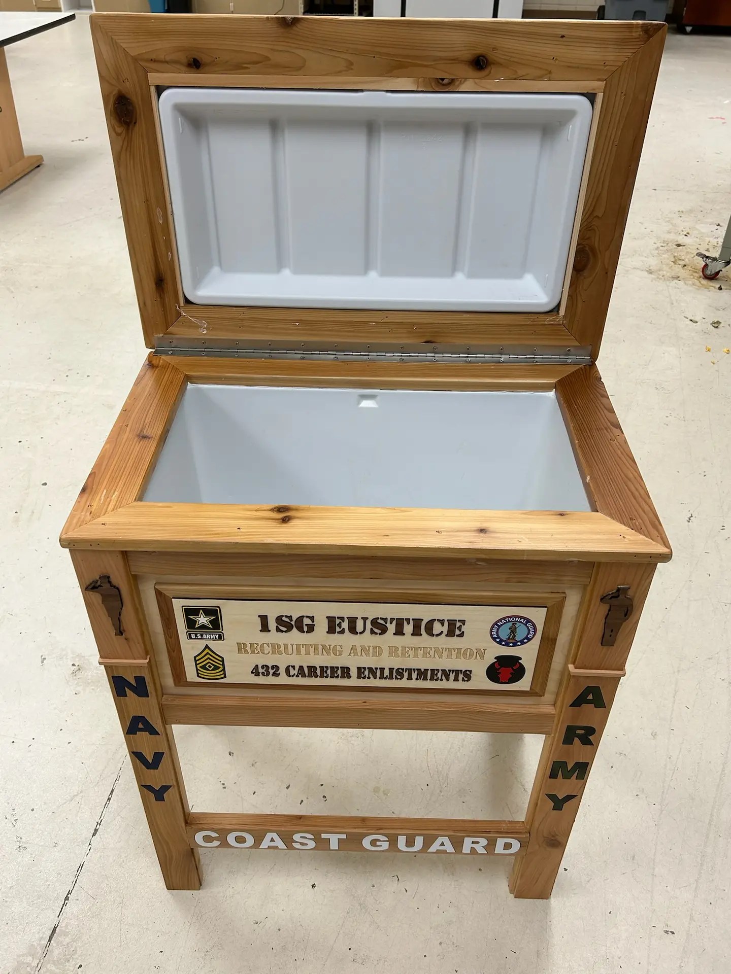 These coolers offer a heartfelt way to honor military and public service, blending craftsmanship with personal pride. Each cooler is meticulously handcrafted from high-quality wood and can be customized with engravings of military branch logos, rank insignias, or meaningful dates to celebrate service and sacrifice. Whether it’s for a veteran, active-duty member, or military family, these coolers are built to last and serve as a lasting tribute.