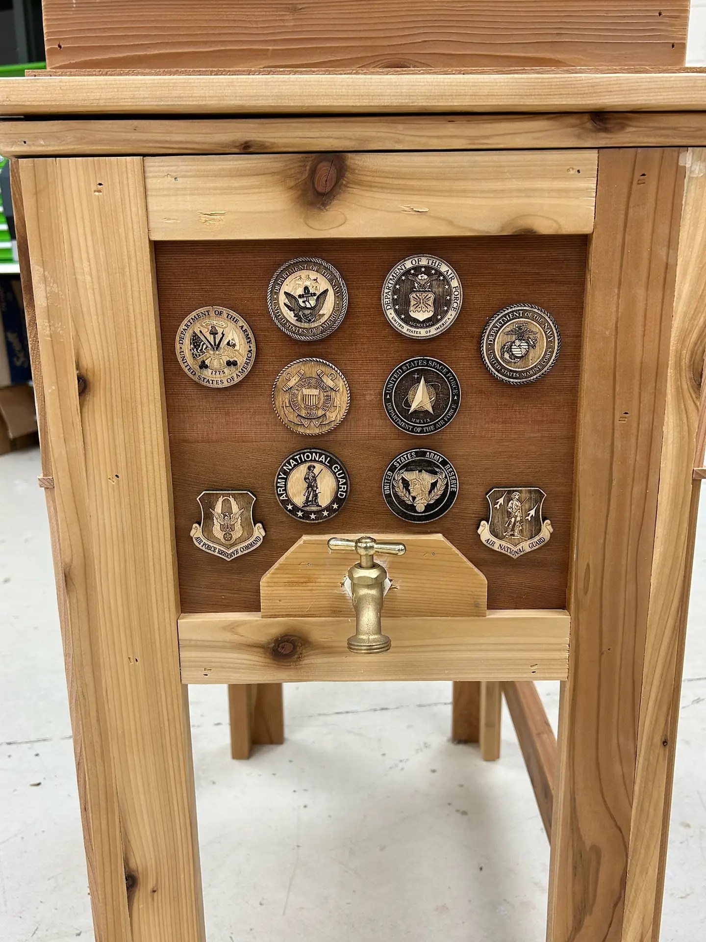Whether you’re rooting for your favorite sports team or honoring the brave service of military personnel and first responders, our coolers offer a perfect blend of functionality and tribute. Crafted from premium wood, each cooler can be customized with official team logos or emblems representing various service branches, making it an ideal choice for tailgates, backyard barbecues, or as a thoughtful gift. Celebrate your passions and show your support with a durable, stylish cooler that stands out at every occasion.